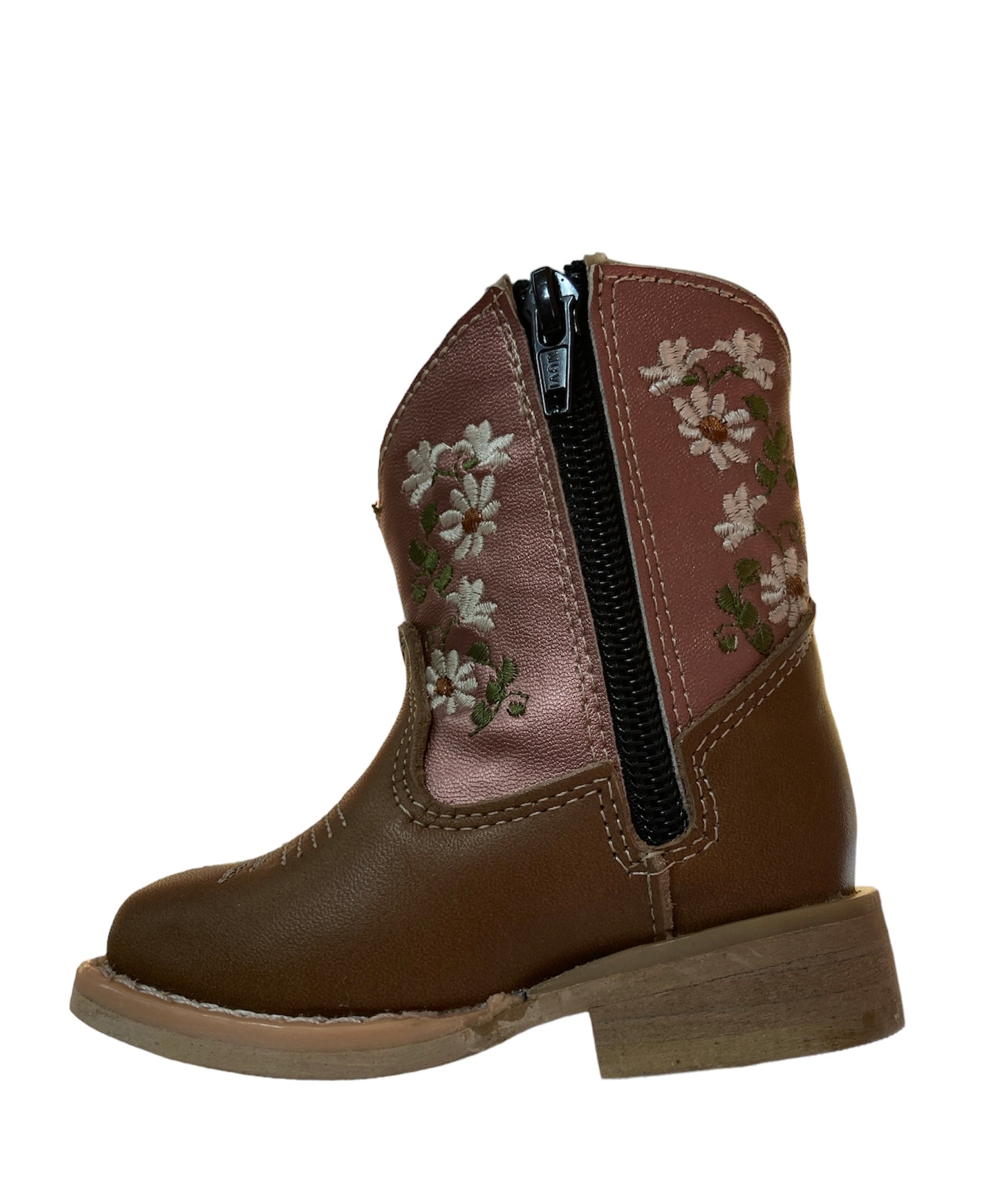 Bota vaquera color miel metálico rosa (Flor Blanca)